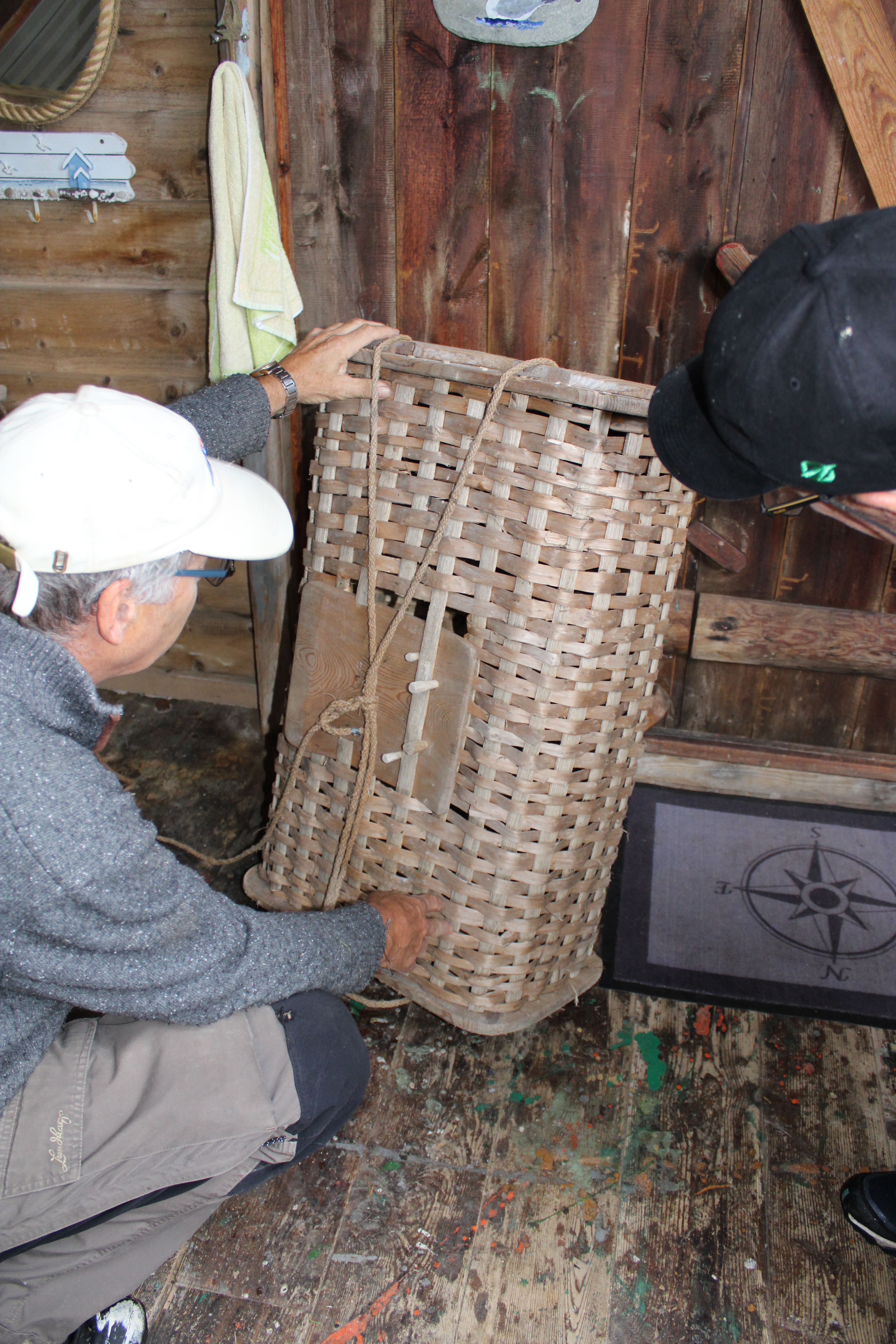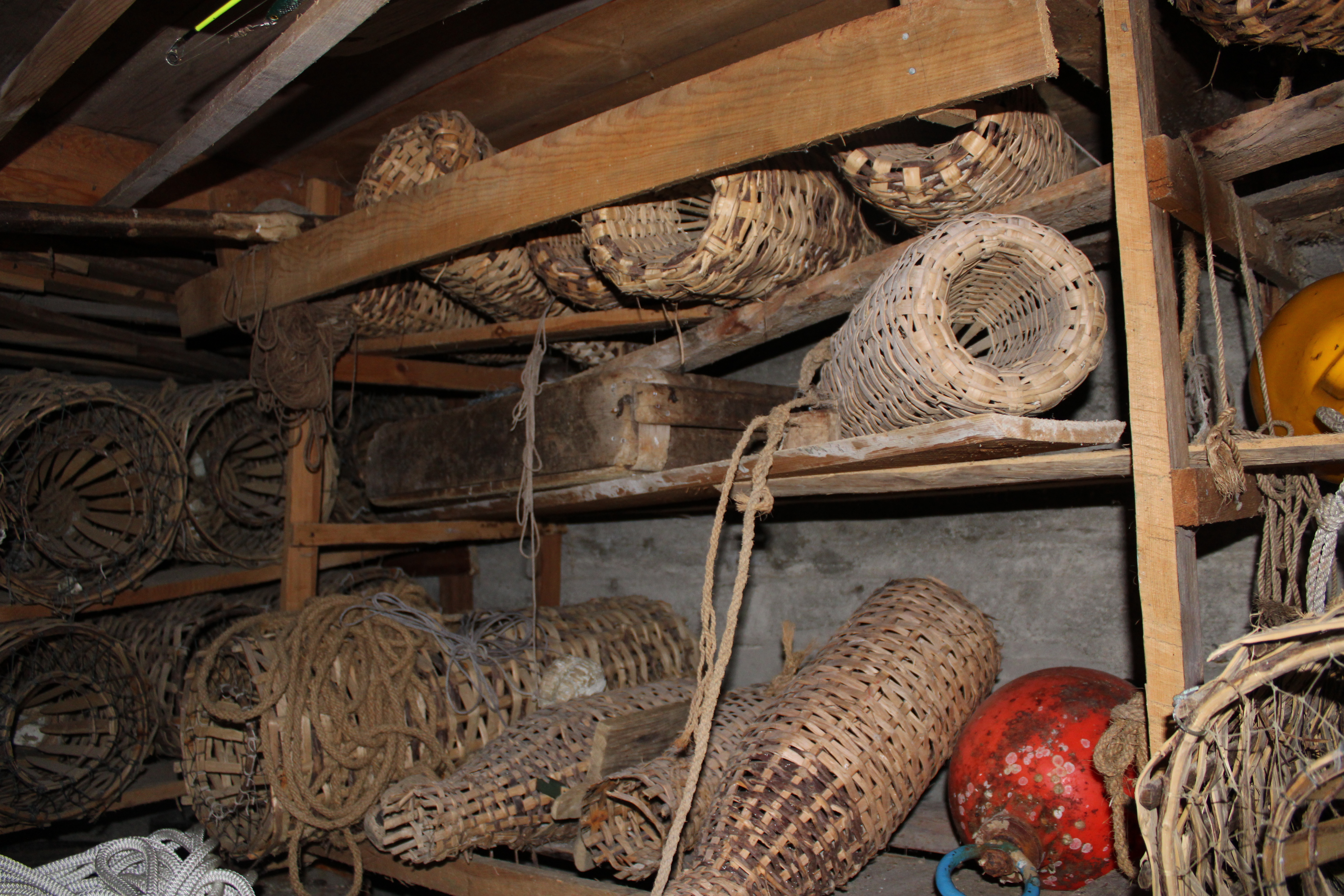 Han hadde fått tilgang til å vise oss naustet på Vedvik, der dei har tatt vare på åleteiner og hummerteiner etter Ivar.